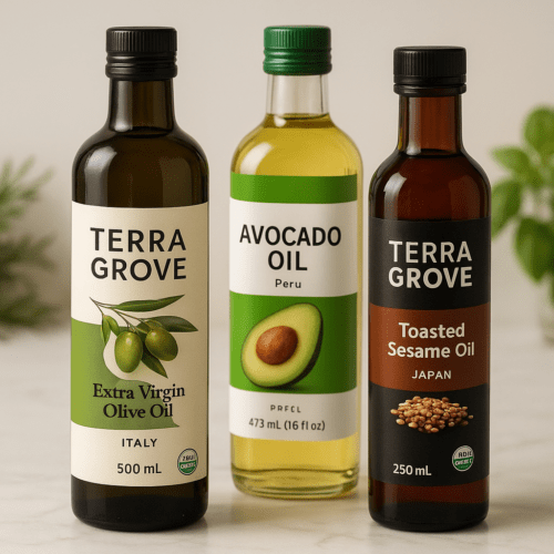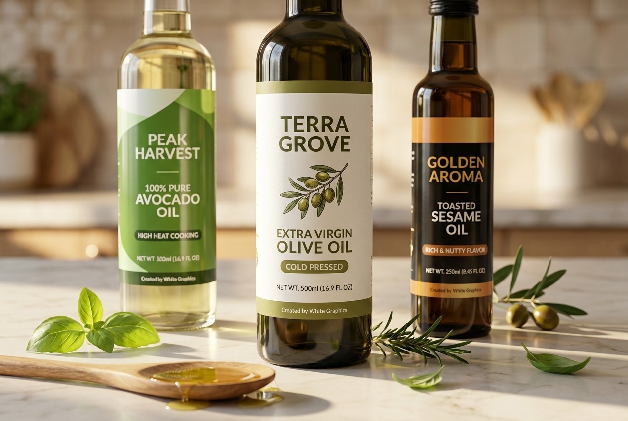 Custom labels for cooking oils, infused oils, and specialty culinary oils.