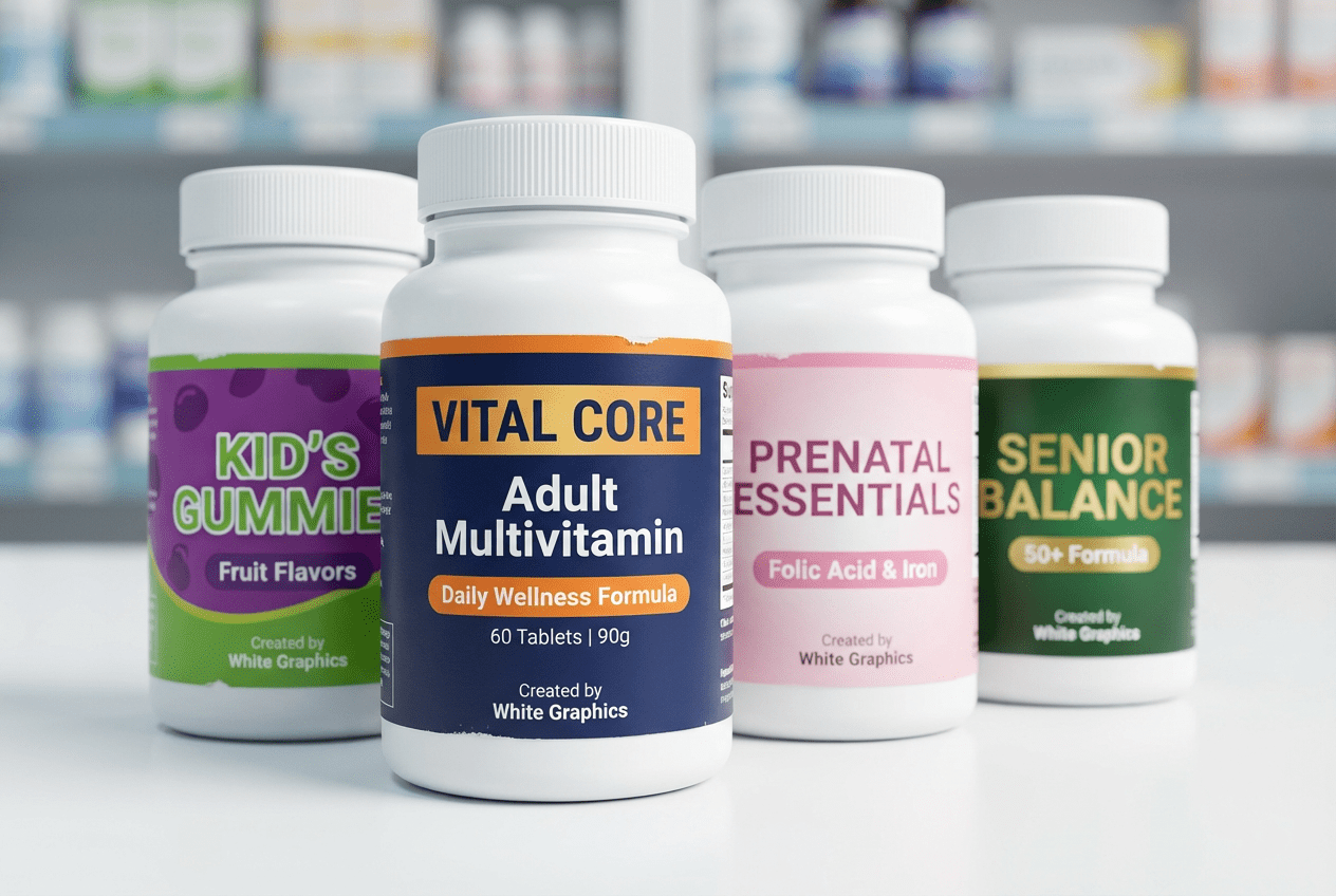 - Secure on Bottles of All SizesAdhesive bonds reliably to HDPE, glass, and polypropylene vitamin bottles from 30-count to 360-count formats — without lifting, wrinkling, or adhesive failure.